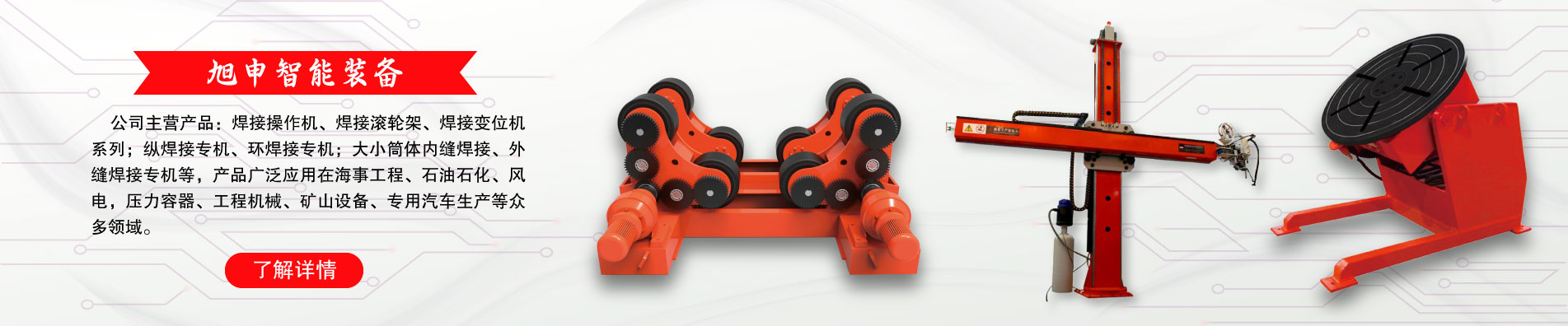 作為焊接自動化裝備與涂裝設備的專業制造商,旭申公司始終堅持“細節(jié)決定成敗,誠信鑄就未來”的經營理念,做一流產品,創(chuàng)一流品牌。 旭申裝備將攜手旭申石化、旭申農業等關聯公司一道,產業報國、造福社會,為新時代的裝備制造、節(jié)能環(huán)保做出應有的貢獻。